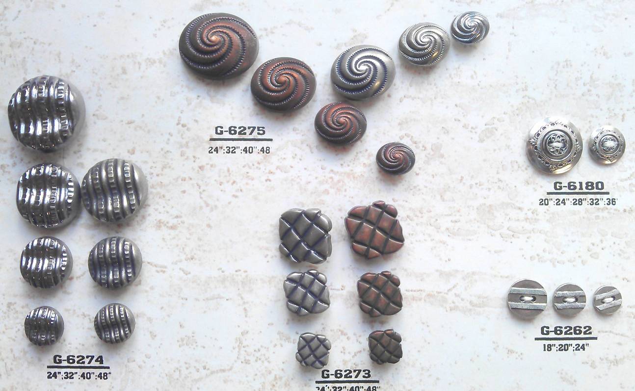 Metalinių ir metalizuotų sagų pavyzdžiai.